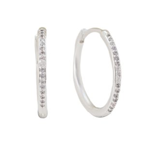Add some sparkle to your look with our Bronx earrings! Featuring hand set clear CZ stones. these pave hoop earrings are the perfect accessory for any occasion. Elevate your style and catch everyone’s eye with these dazzling earrings.